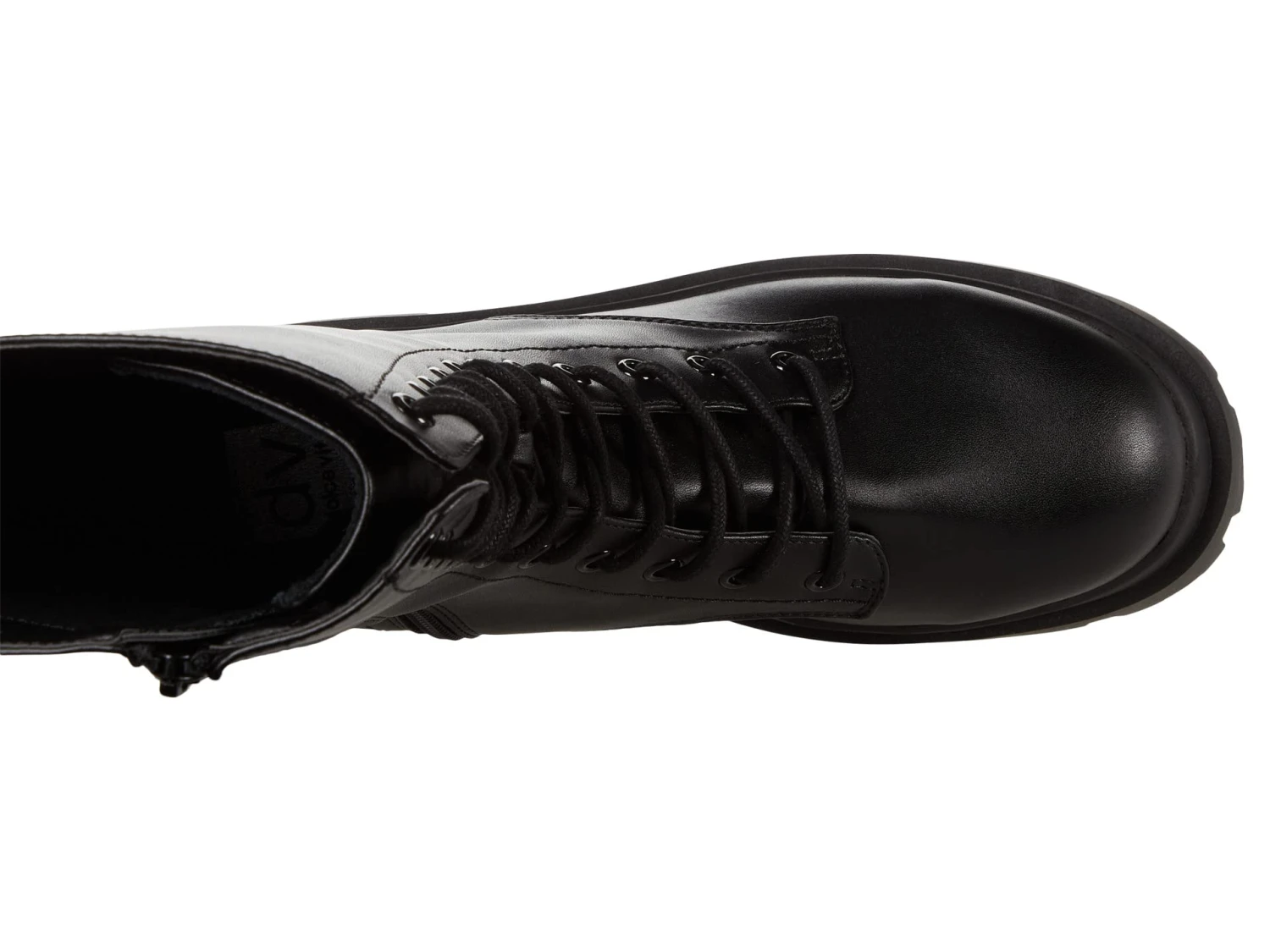 - Lace-up closure with pull tab at heel and side zip for easy on and off.